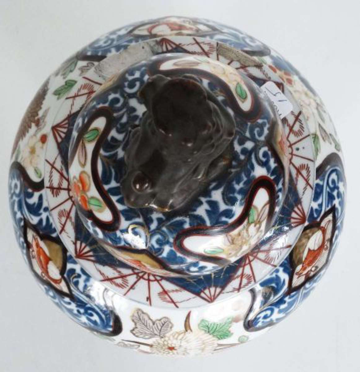 Japon. Vase couvert en porcelaine à décor floral et animalier. Haut: 50cm.(accidents et manques)