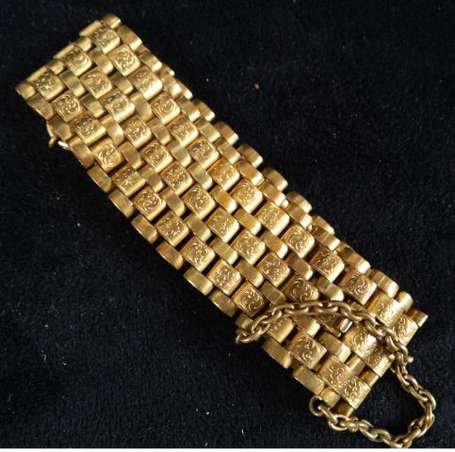 Lot composé d'une boucle de ceinture et de deux bracelets en métal doré, l'un avec un charme en jaspe sanguin. XIXe siècle. (accident au charme)