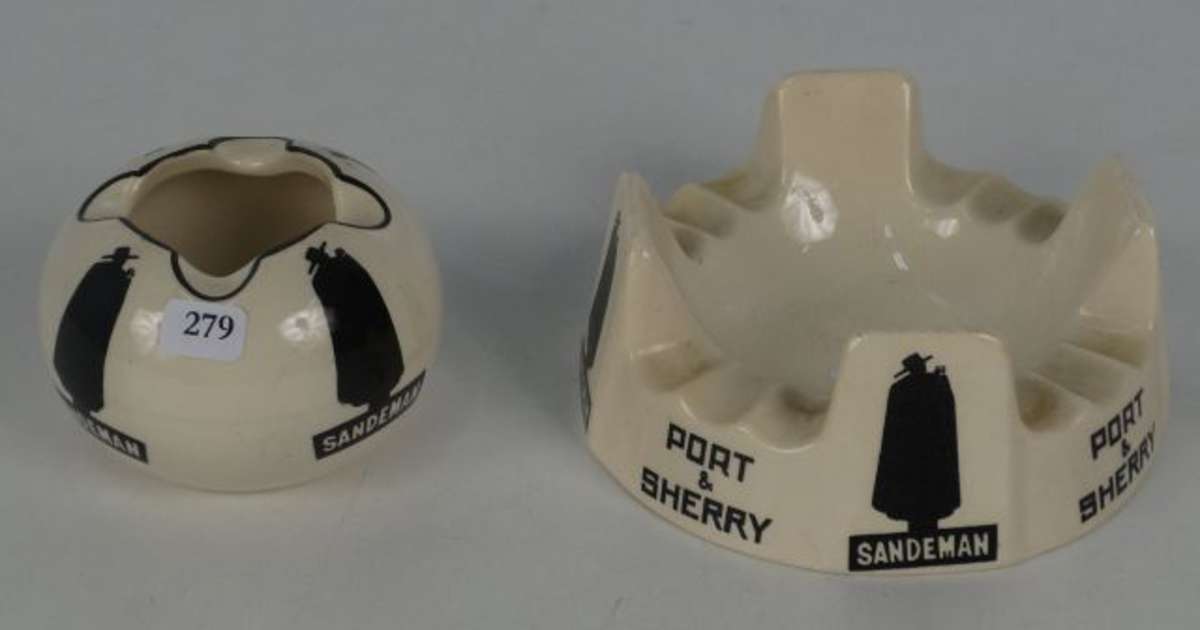 SANDEMAN : 2 Beaux cendriers en faïence de Sarreguemines, reprenant le personnage de Georges Massiot.