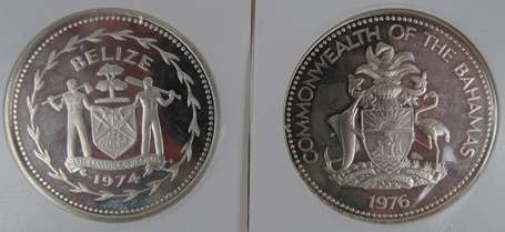 Bahamas - Belize - Lot de 2 pièces en argent Belize 10 dollars 1974 - Bahamas 2 dollars 1976. Sup