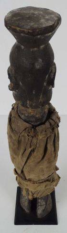 Ancien fétiche en bois dur 'à usage médicinal' avec sa charge magique. Coiffure et scarifications