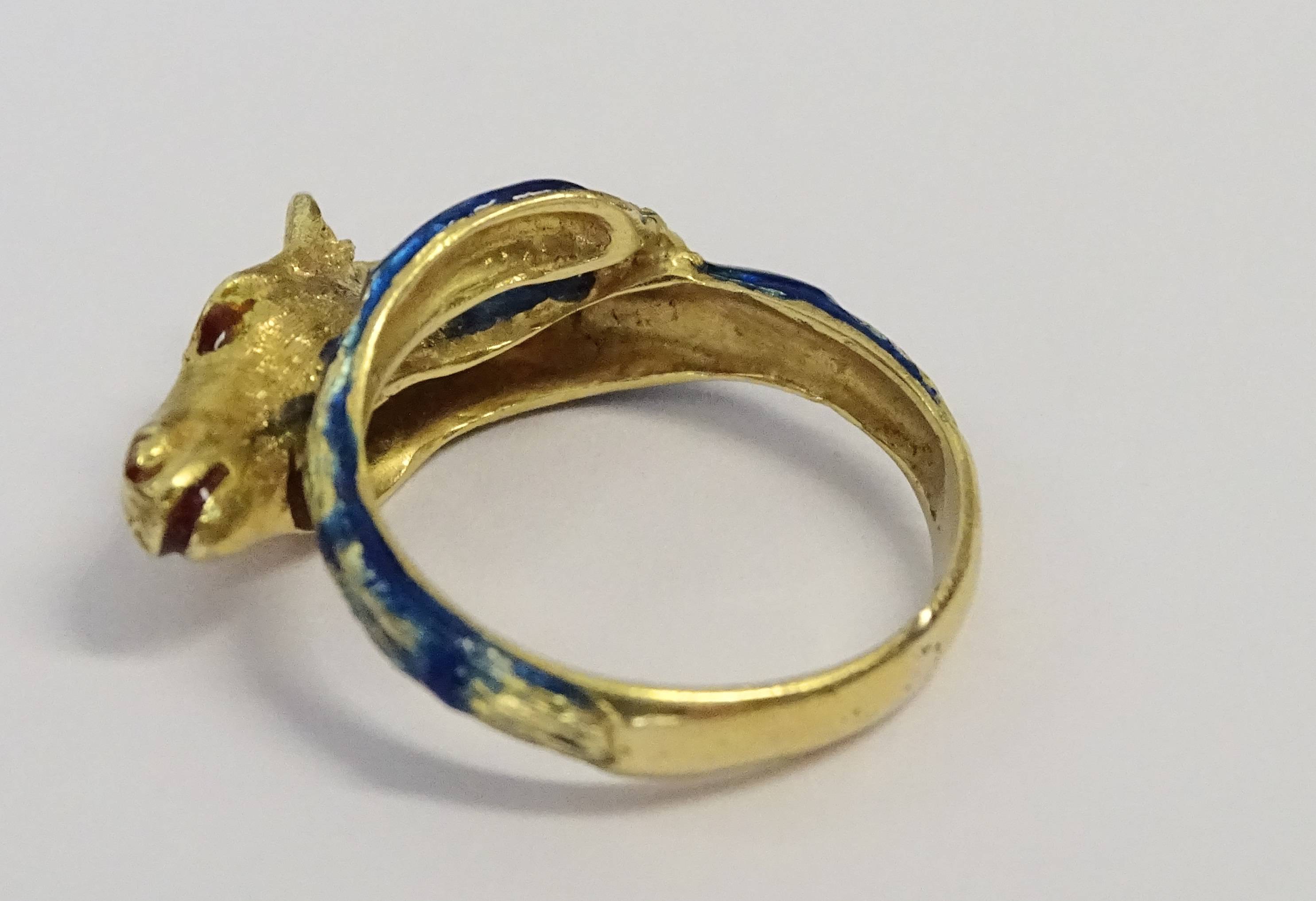 Bague en or jaune 18K (750°/00) à motif d'un cheval émaillé. P. 7,8 g