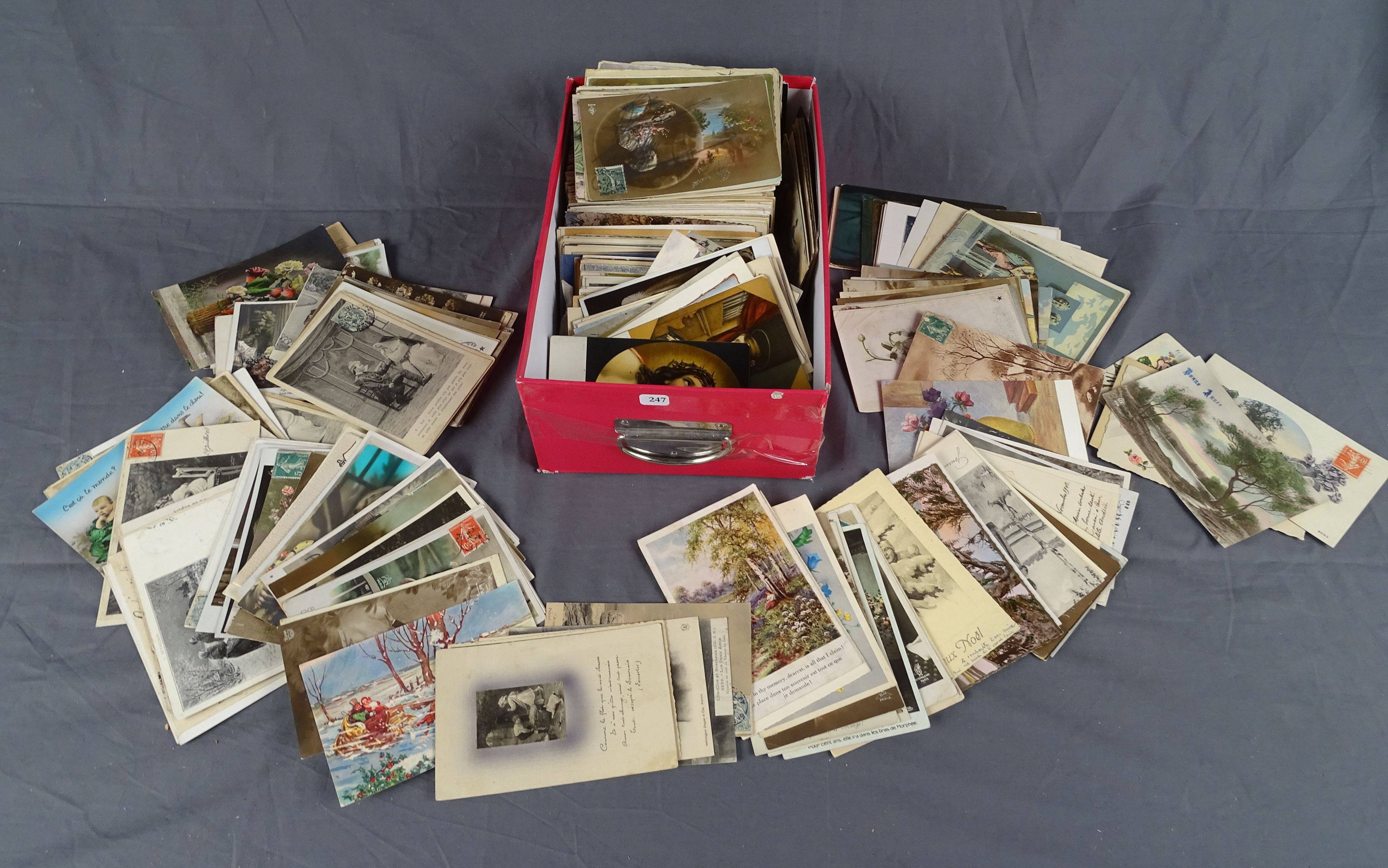 Fantaisies - 1 Boite d'environ 700 CPA - Fêtes , illustrateurs , Amoureux , Bébés , Viennoises , Humour , Fleurs ...