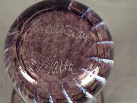 PHOENICIAN Malte - Vase tronconique en verre soufflé mauve, signé au revers. H. 19,5 cm