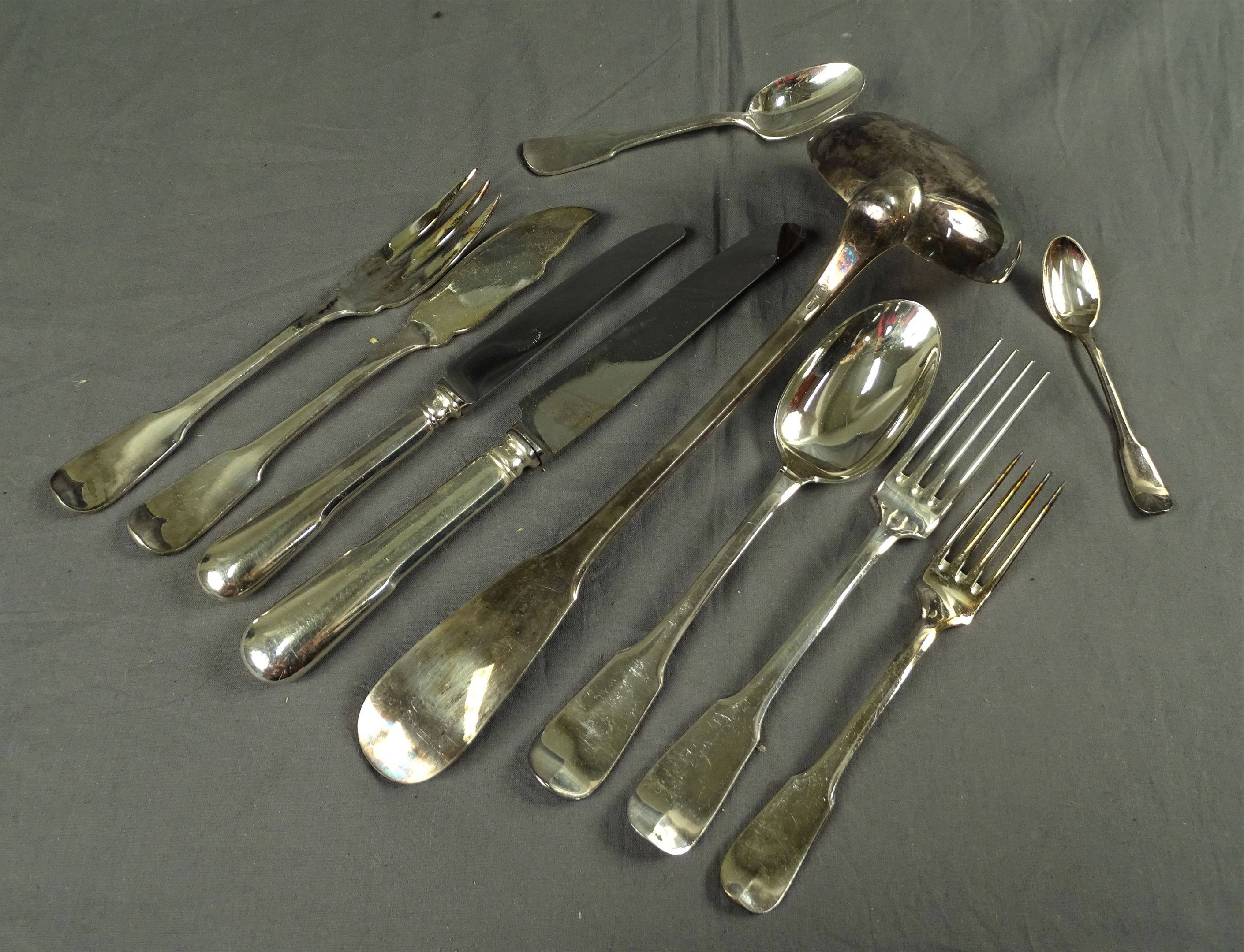 BOULENGER - Ménagère 109 pièces en métal argenté modèle à queue de rat. Elle comprend : 12 couverts, 12 couteaux de table, 12 couverts à poisson, 12 fourchettes à entremets, 12 couteaux à fromage, 12 cuillères à dessert, 12 cuillères à café et une louche
