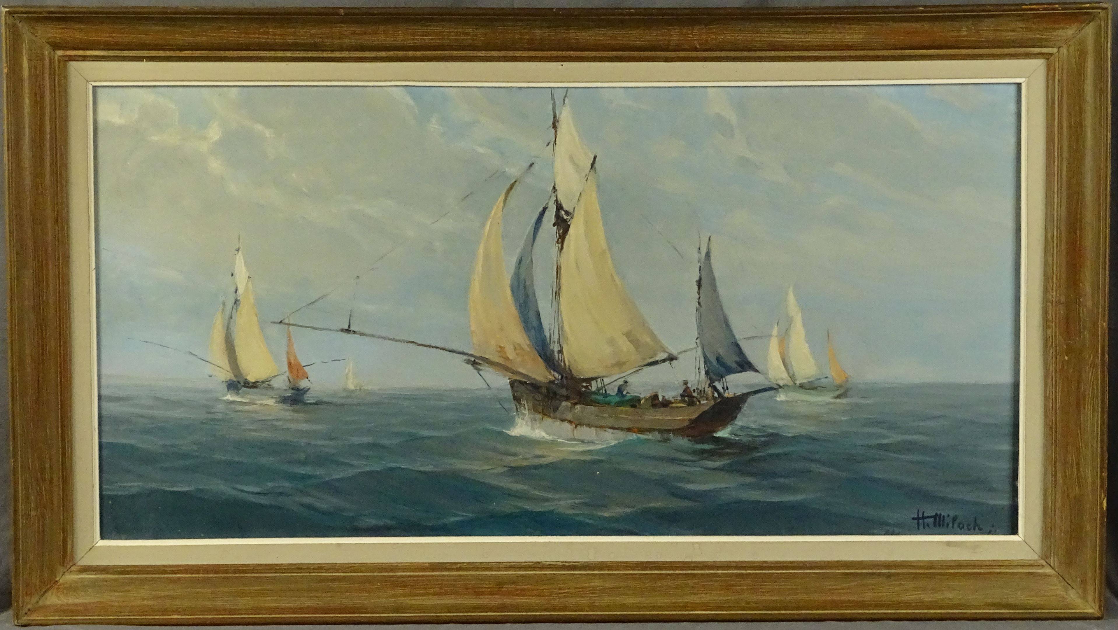 MILOCH Henri (1898-1979) - Thoniers en mer. Huile sur toile, signée en bas à droite. 50 x 100 cm.