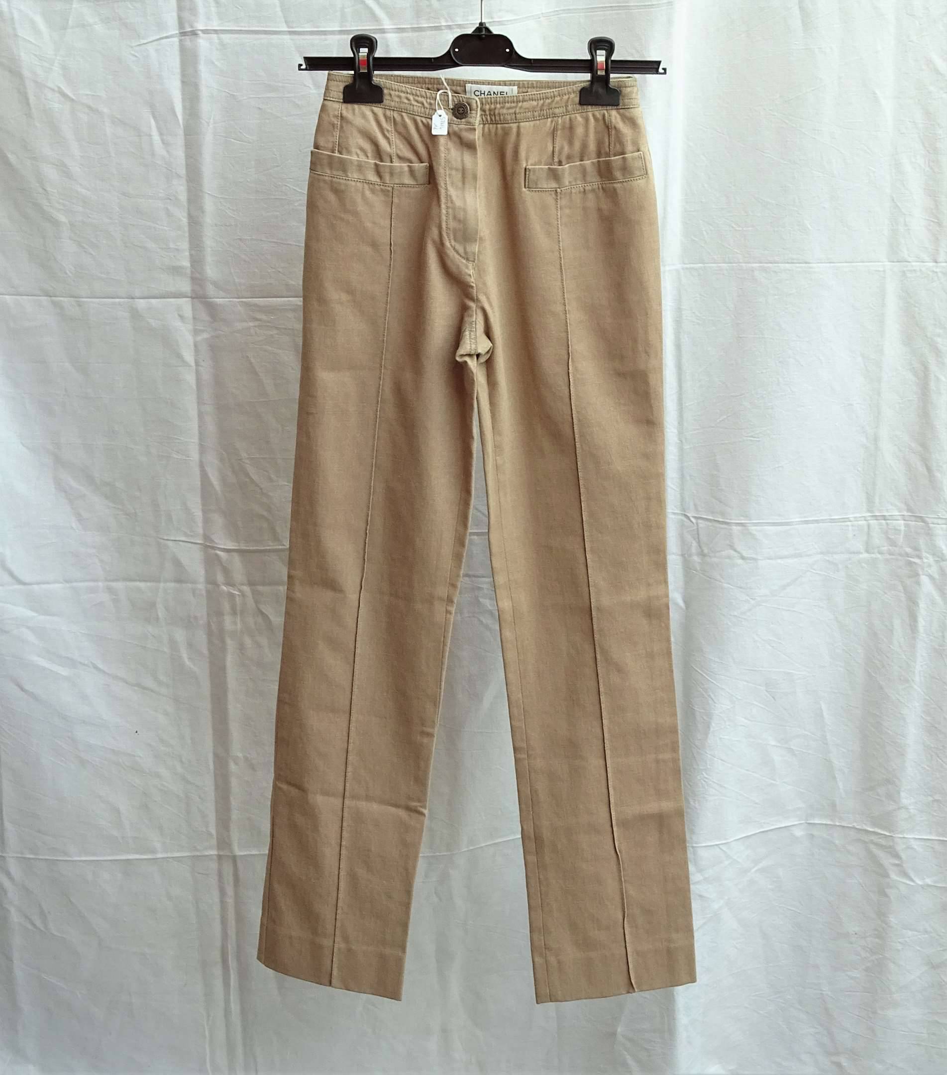 CHANEL - Pantalon en toile de coton beige. T. 34. Très bel état.