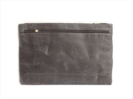 LANCEL - Porte documents en cuir grainé noir, rabat extérieur en forme d'enveloppe. 26 x 40 cm (usures)