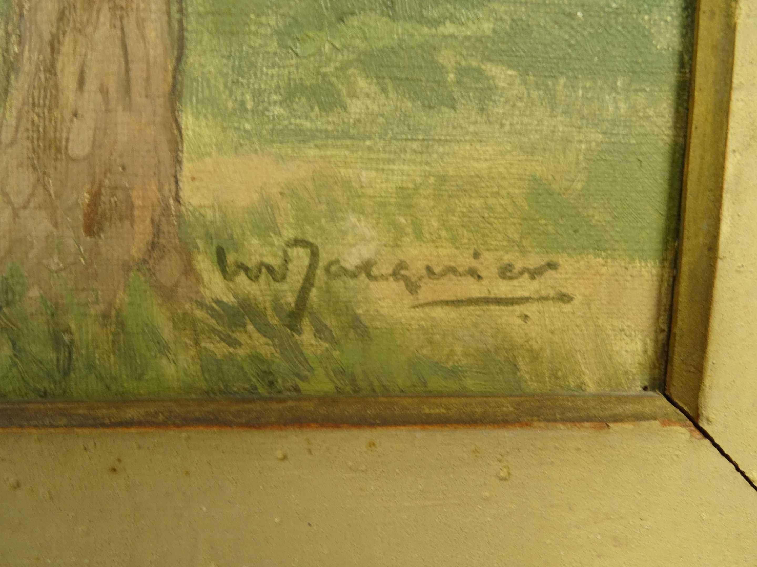 JACQUIER Marcel (1877-1957) - Famille bigoudaine à Plomarch, huile sur toile signée en bas à droite. 38,5 x 57,5 cm (accident)