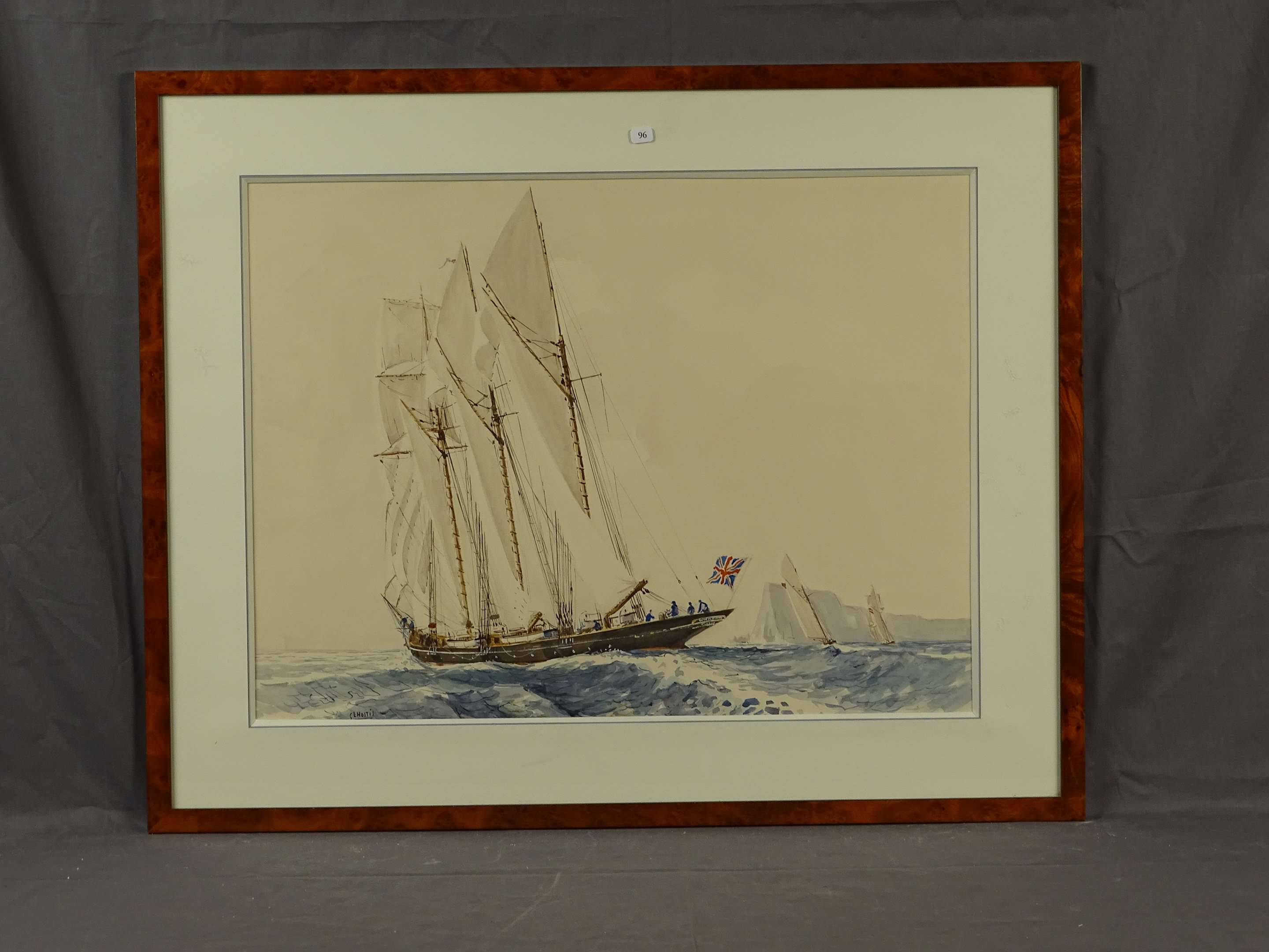 L'HOSTIS Guy 1945- Yacht Sunbeam Aquarelle, signée en bas à gauche. 44,5 x 59,5 cm
