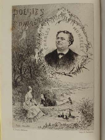 MONSELET (Charles) - [Ensemble de 3 volumes :] - La lorgnette littéraire. Dictionnaire des grands et des petits auteurs de mon temps - Paris ; Poulet-Malassis et de Broise, 1859 - 1 volume In-12° - Panier fleuri. Prose et vers - Paris ; Librairie Bachelin-Deflorenne, 1873 - 1 volume grand In-12° - Poésies complètes - Paris ; E. Dentu, 1880 - 1 volume grand In-12° - Portrait frontispice par Louis Chevalier, gravé à l'eau-forte par Lalauze - Exemplaire enrichi d'1 billet autographe signé de Charles Monselet relié en début d'ouvrage - Reliure de l'époque similaire aux 3 volumes demi-veau glacé havane signée V. Champs (partie de coupe usée au 1er titre) - Dos à nerfs ornés de filets - Pièces de titre maroquin noir et rouge (de légères griffures et de légers frottements), les dos des 2 premiers titres sont datés or - Têtes dorées - Ex-libris gravés : Manuel Les Carziers
