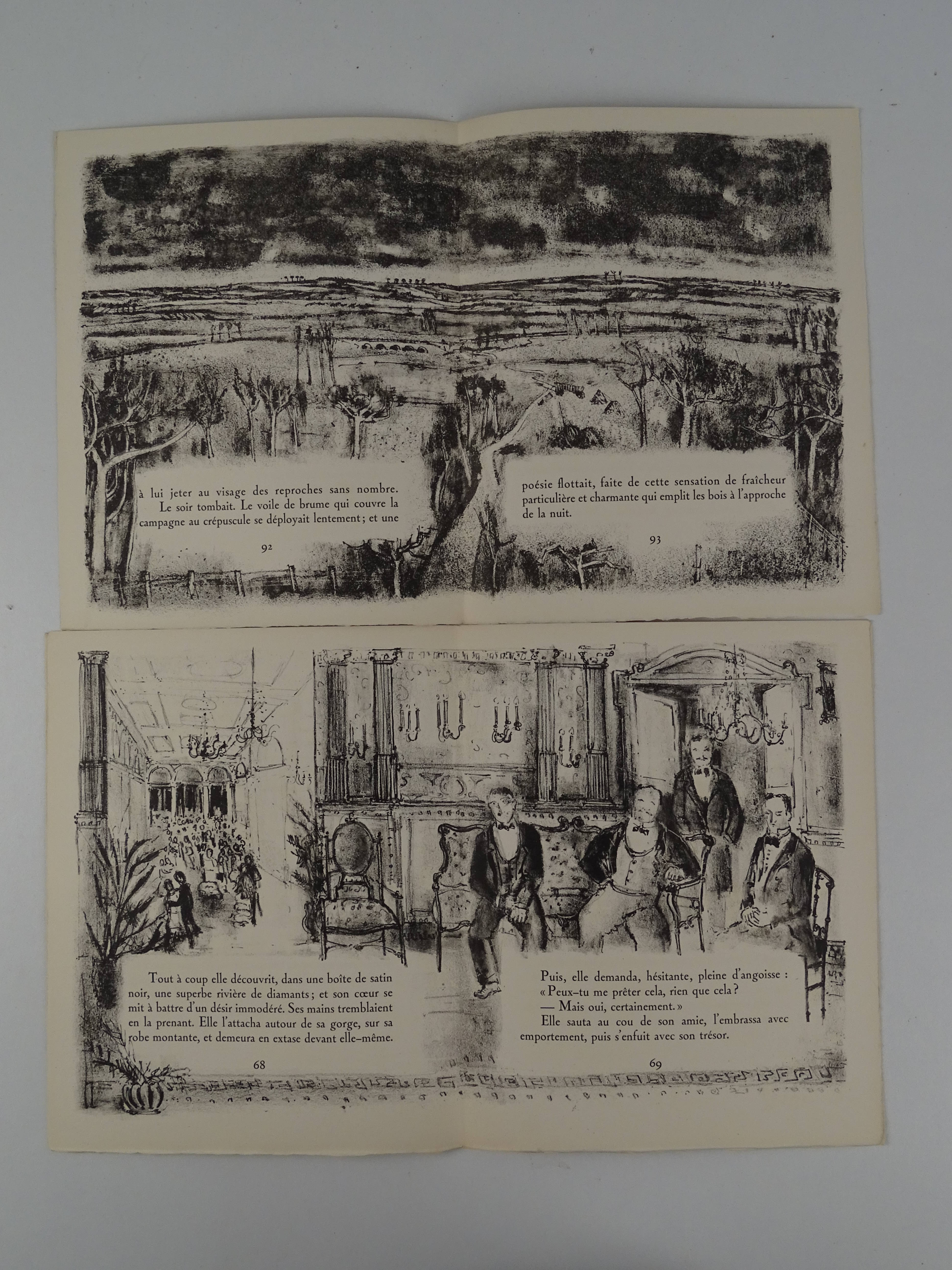 MAUPASSANT (Guy de) - Six contes - Sans lieu ; Les Bibliophiles de l'Est, 1958 - 1 volume In-4° en feuilles sous couverture rempliée (piquée) - Lithographies originales de Bernard Gantner in et hors texte en noir - Bon exemplaire intérieur, l1 des 120 exemplaires numérotés sur vélin d'Arches (n°63).