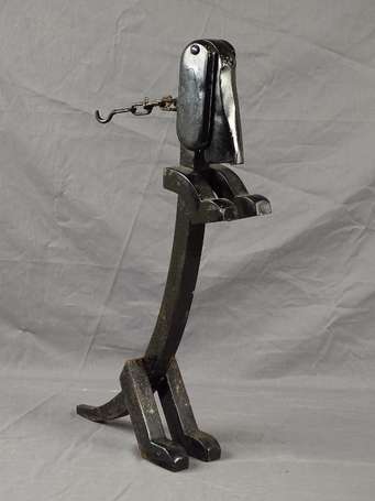 SCHENCK Edouard (1874-1959) Teckel porte nécessaire de foyer en fer forgé laqué noir. H. 57 cm (oxydations)
