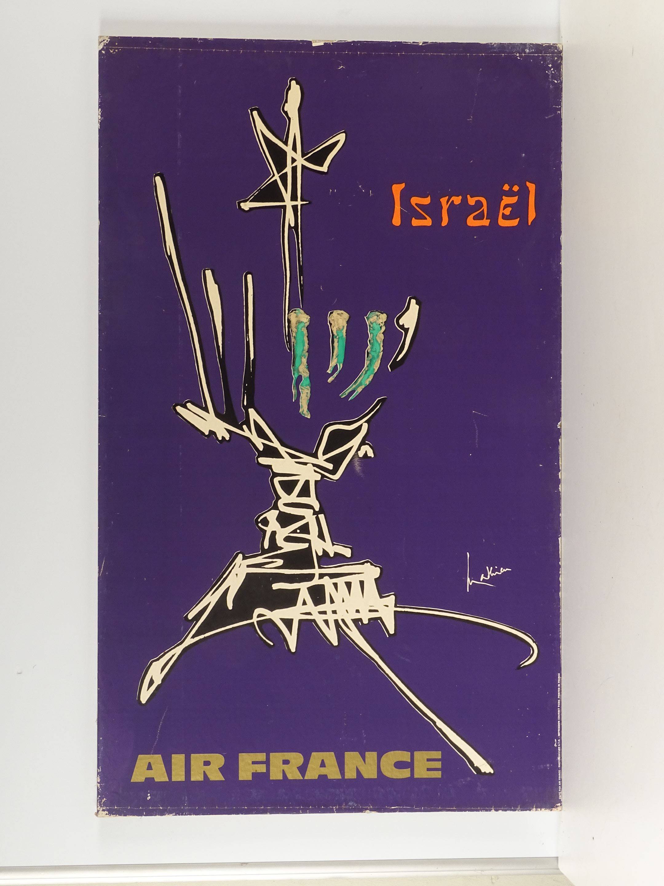 MATHIEU Georges (1921-2012) pour Air France, affiche imprimée Israël contrecollée sur aggloméré.