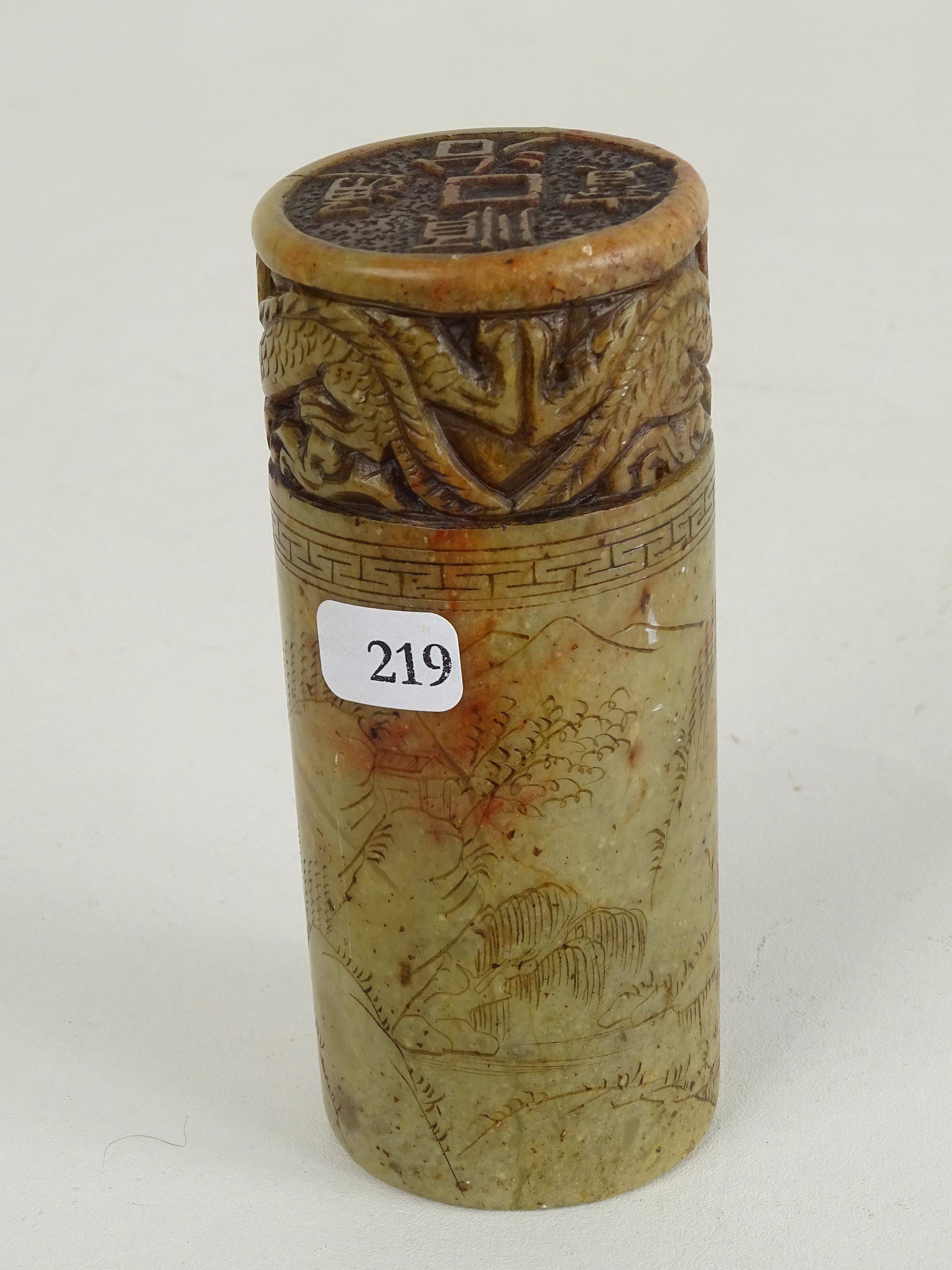 CHINE Sceau en steatite signé H. 12 cm (Chocs)