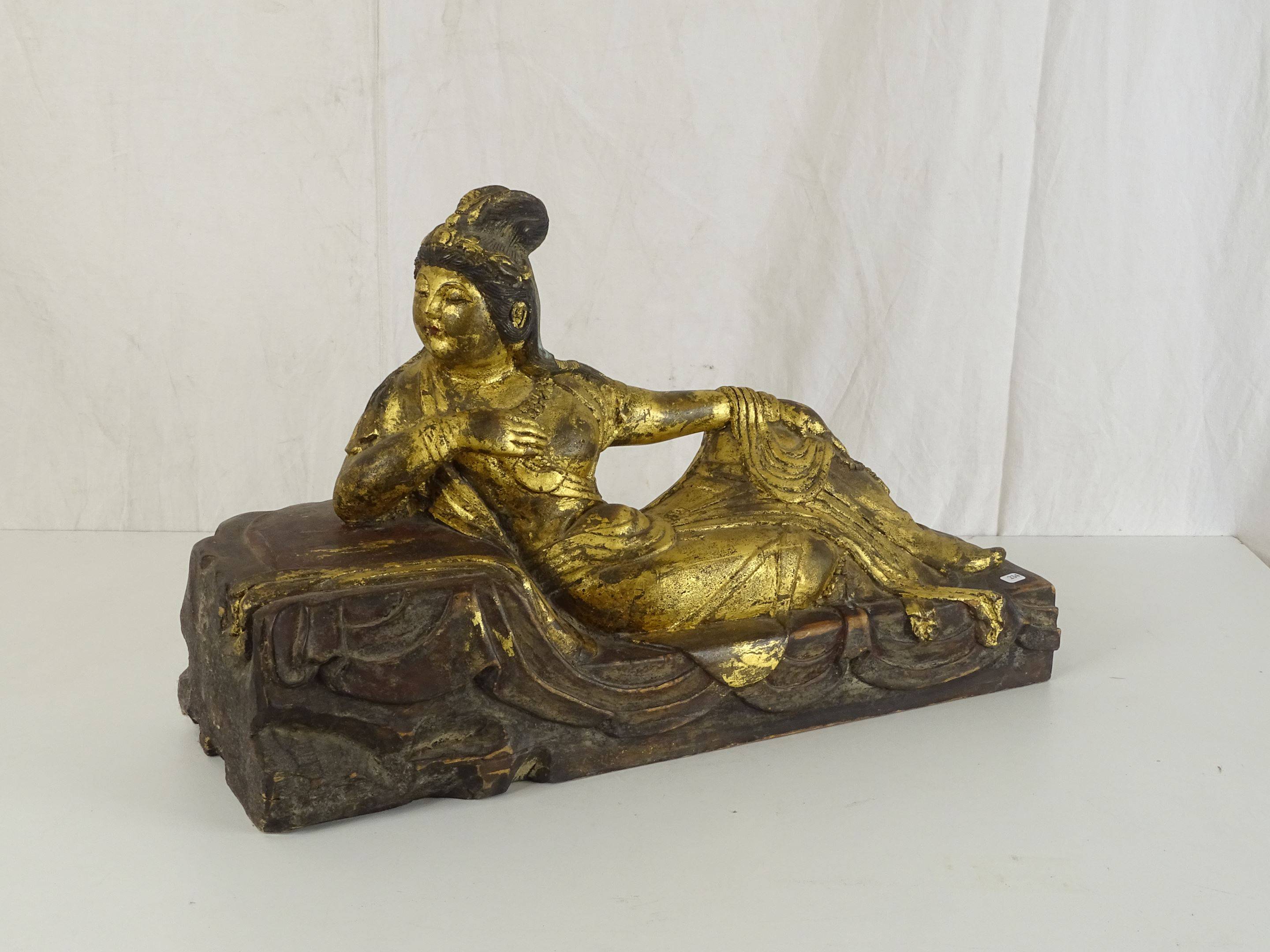 CHINE Guanyin en bois doré, moderne H. 60 cm