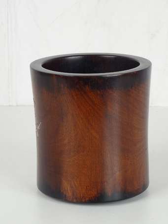 CHINE QING Pot à pinceaux en bois à décor d'oiseaux. H. 16,5 cm