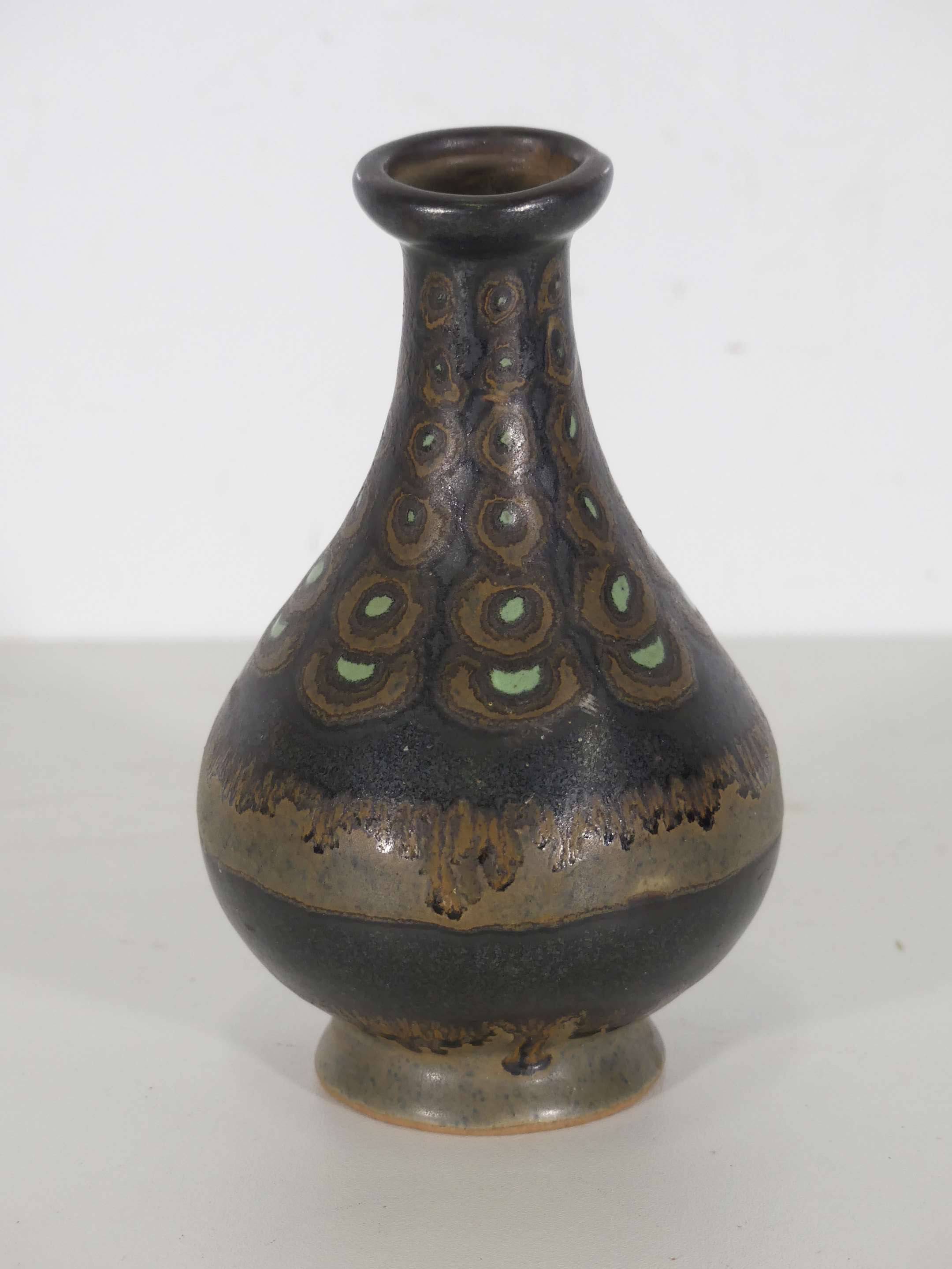 DAGE Louis-Auguste (1885-1963) et VAL Eugène - Vase en grès émaillé vert et brun, la monture en étain