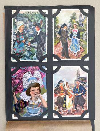 Illustrateurs - Homualk Charles 1909-1996 : « Bretagne » : Album de présentation en usage au magasin des Éditions Gaby. 80 cartes glacées signées Homualk. CAHIERS SANS RELIURE;