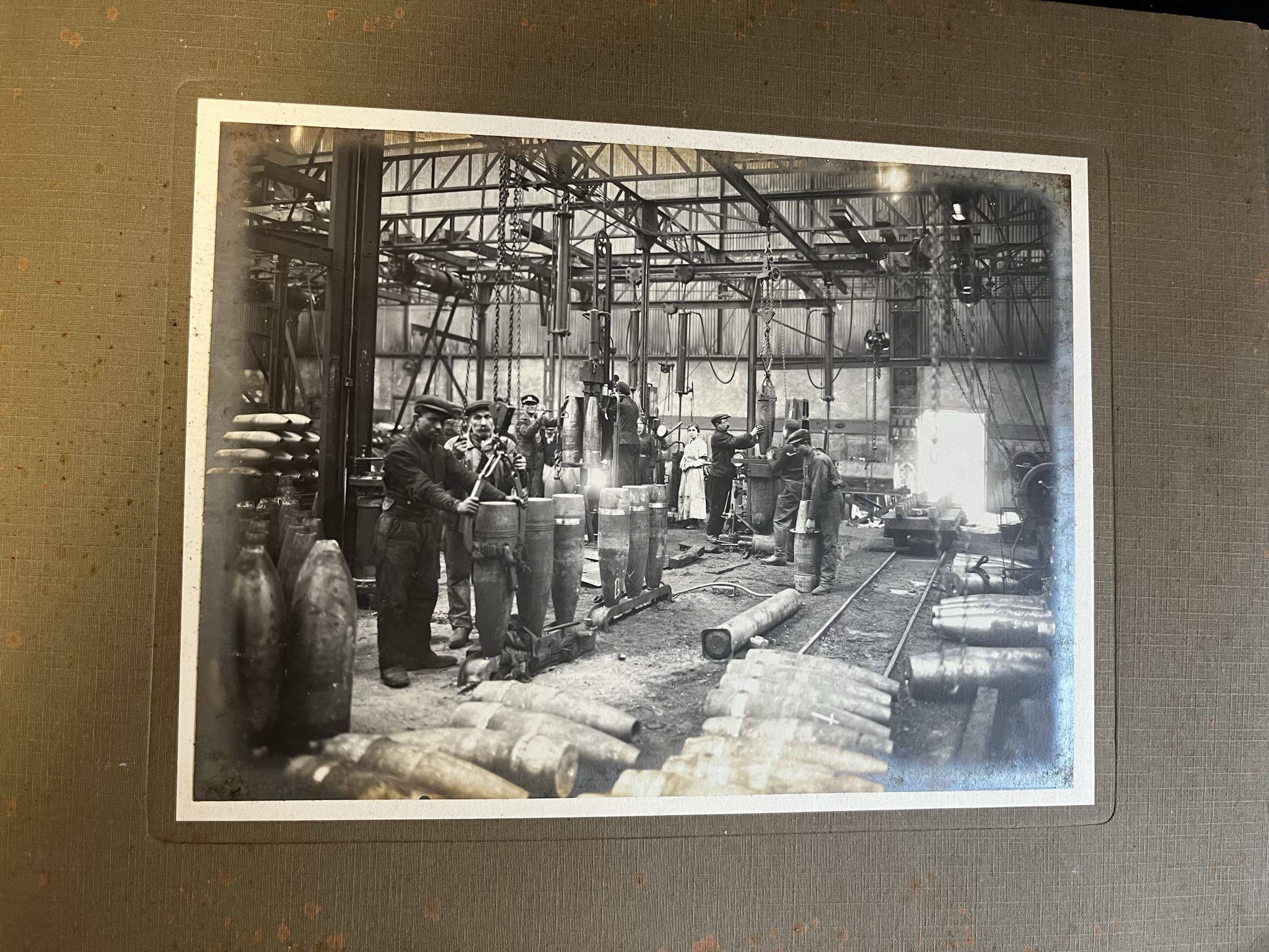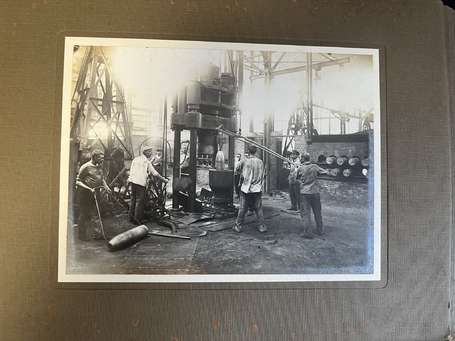 Société des Aciéries de Longwy , ateliers de construction d'Aubervilliers 1917 - Album de 21 grandes photos ( Ouvriers et scènes d'ateliers ) - Fabrication d'obus pour la guerre - Manque le dos de l'album