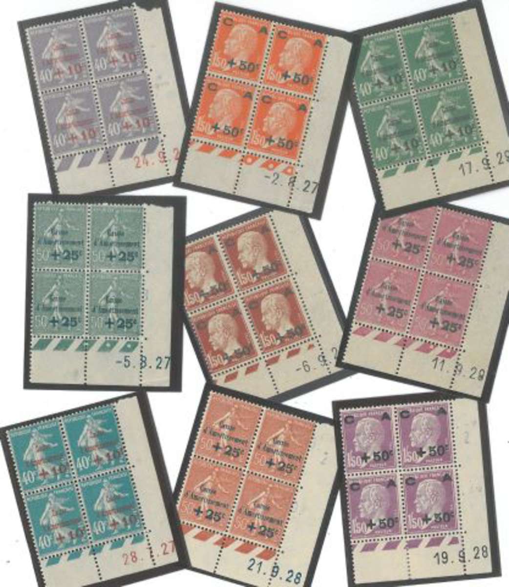 France - Caisse d'amortissement n°246 à 255 sauf 252 tous en blocs de 4 coins datés - N°249/250/251