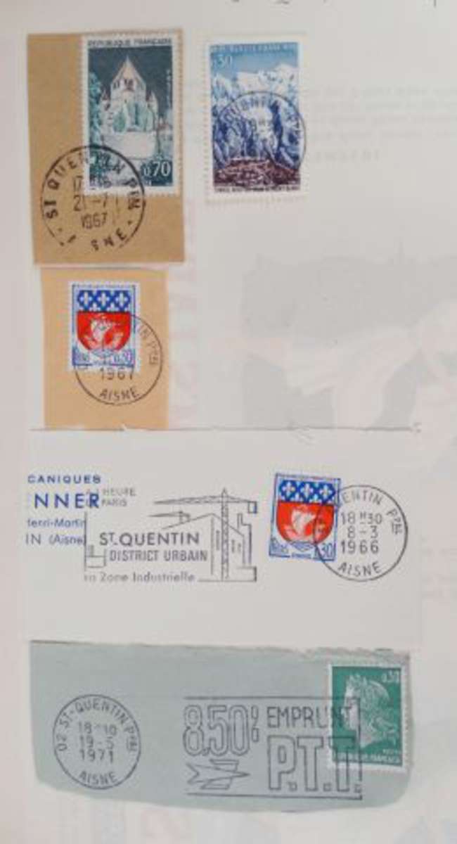2 cartons de courriers et flammes diverses + 2 classeurs de timbres détachés avec oblitérations classés